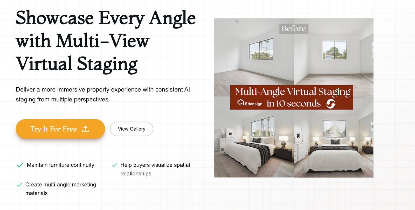 AI-powered platforms like Edensign make multi-view staging possible. They use the same design system for every angle of a room. This creates a unified feel for listings instead of making them look pieced together.